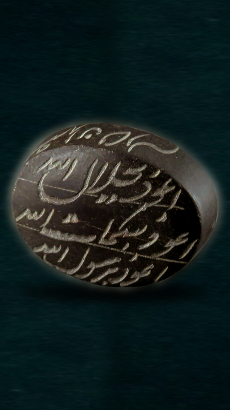 نگین آن حدید صینی باشد و بر روی آن سه جمله در سه سطر بنویس :